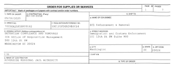 La Cárcel Regional de Riverside ha recluido a miles de personas para su detención de corta duración desde julio de 2025. Las personas recluidas en Riverside suelen desaparecer de los sistemas utilizados para localizar a las personas detenidas y tienen grandes dificultades para ponerse en contacto con su familia o sus abogados. Nuestras investigaciones han descubierto que la mayoría de las personas recluidas en Riverside no tienen antecedentes penales y, en algunos casos, ni siquiera tienen un caso de expulsión pendiente con el ICE. Riverside también ha empezado a retener a mujeres, lo que es extremadamente raro. Según las propias actas de la junta de la cárcel de Riverside, más del 50% de los ingresos previstos de la cárcel para 2026 procederán ahora de la detención por el ICE.